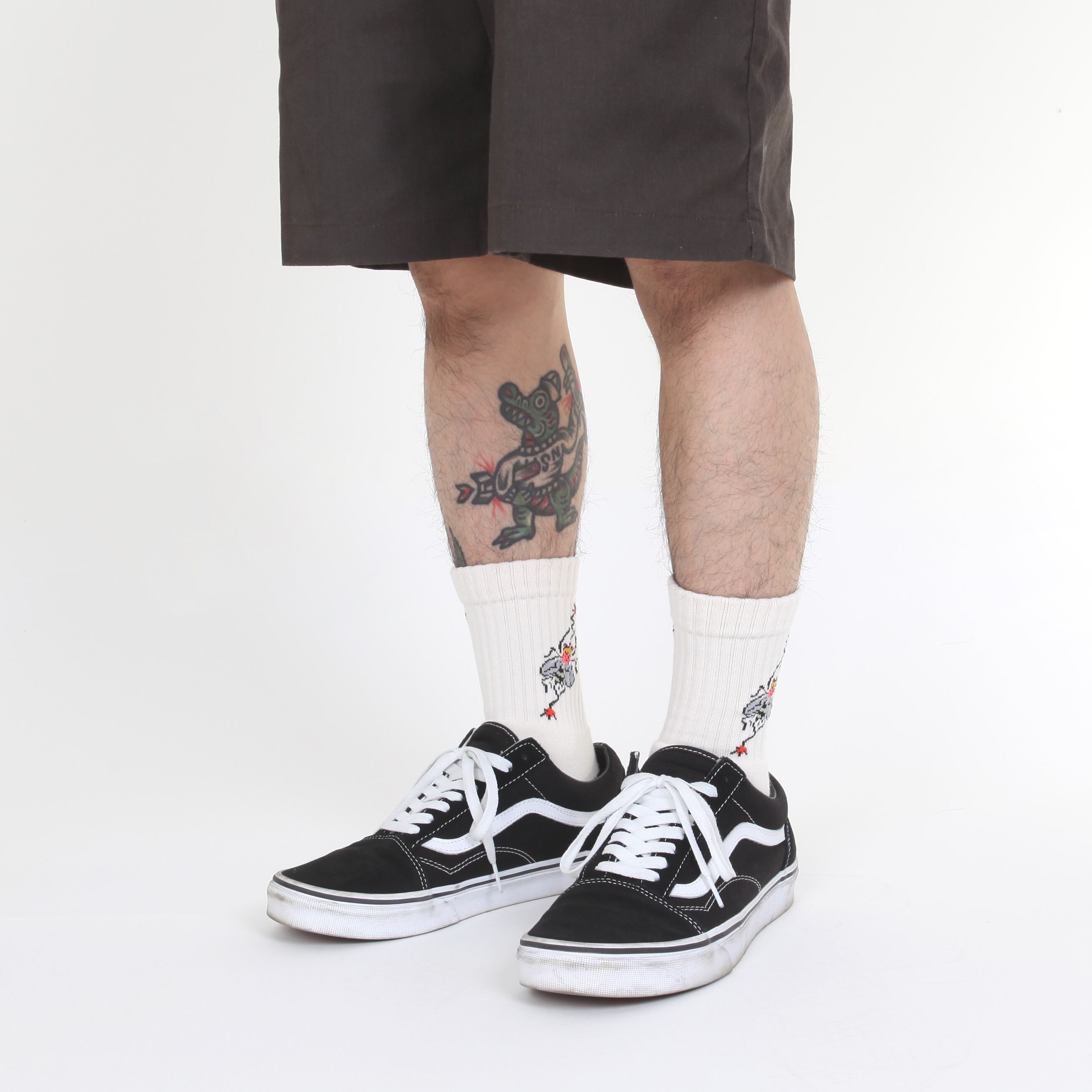 Holie glory のYushi さんに描いていただいたフラッシュから作った靴下です。