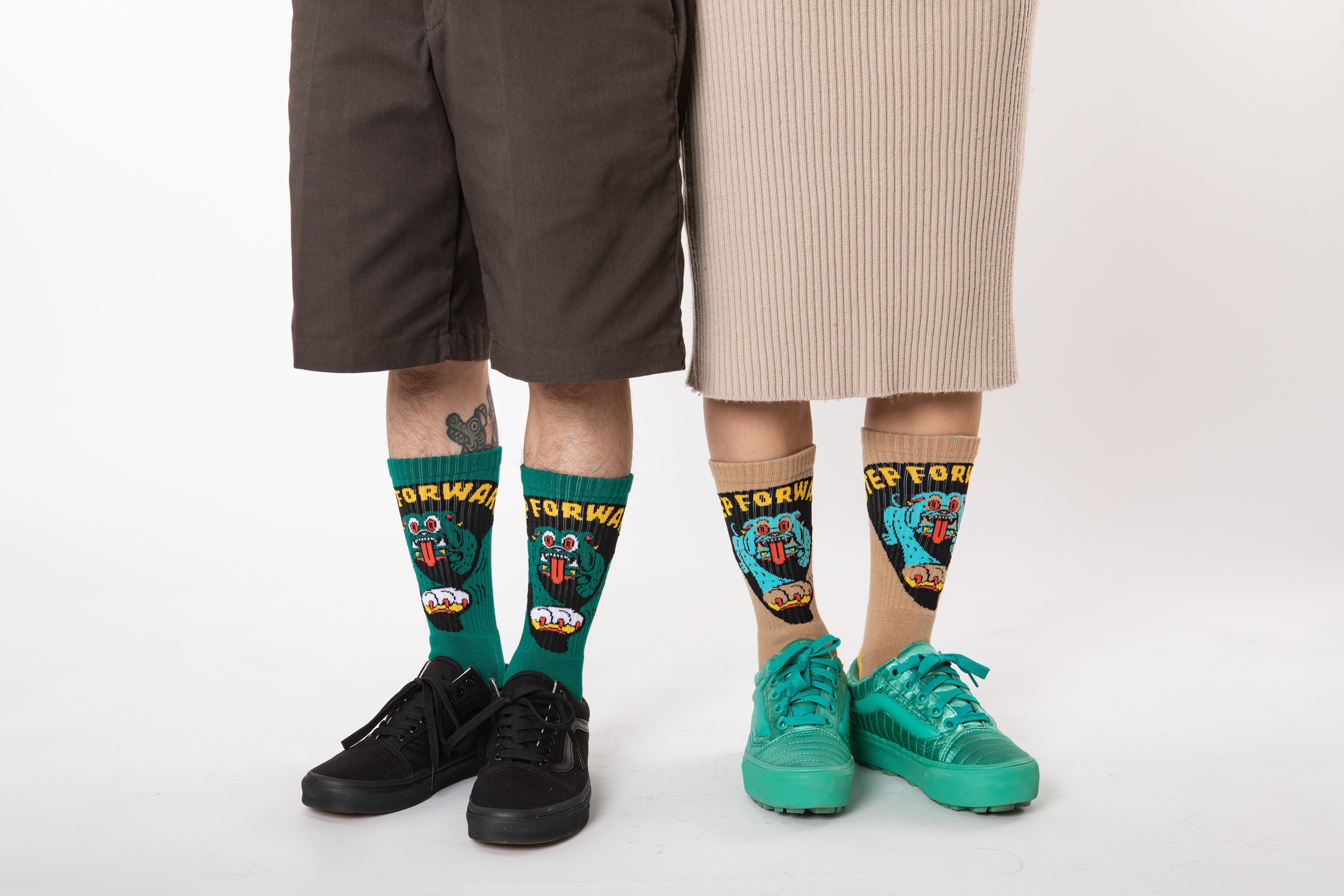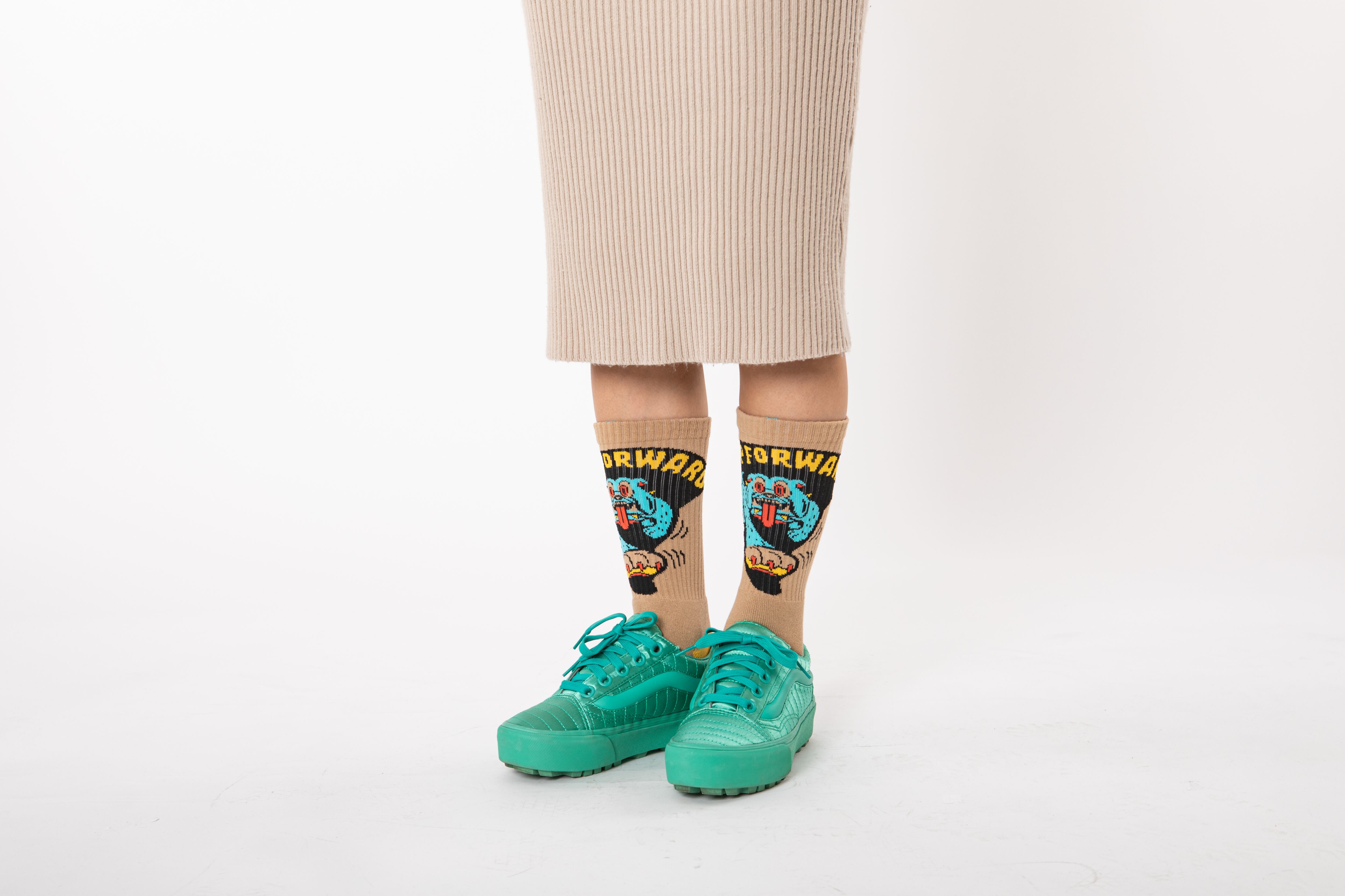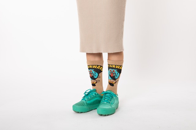 そんな中で Step forward というテーマで靴下のデザインを頂きました。