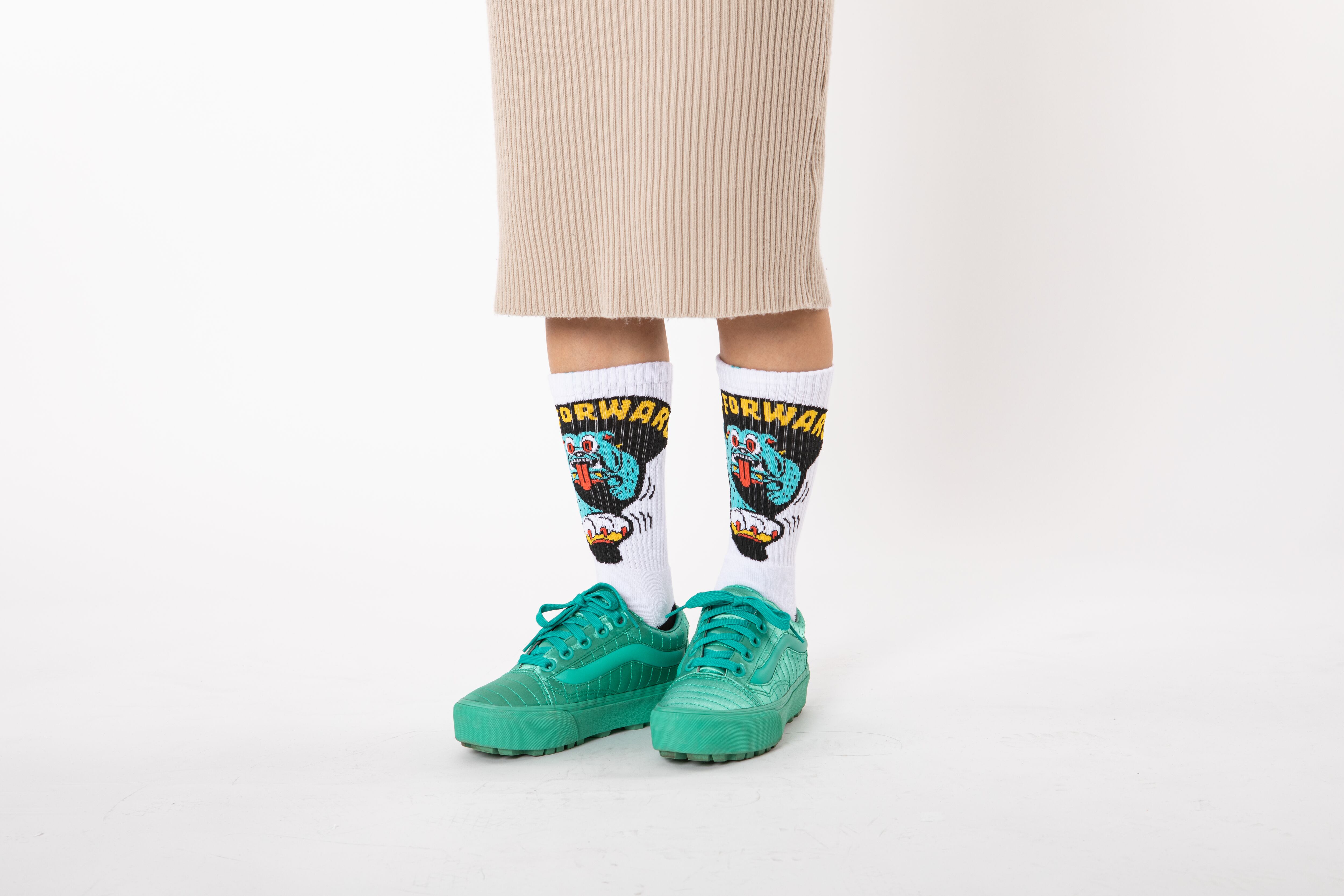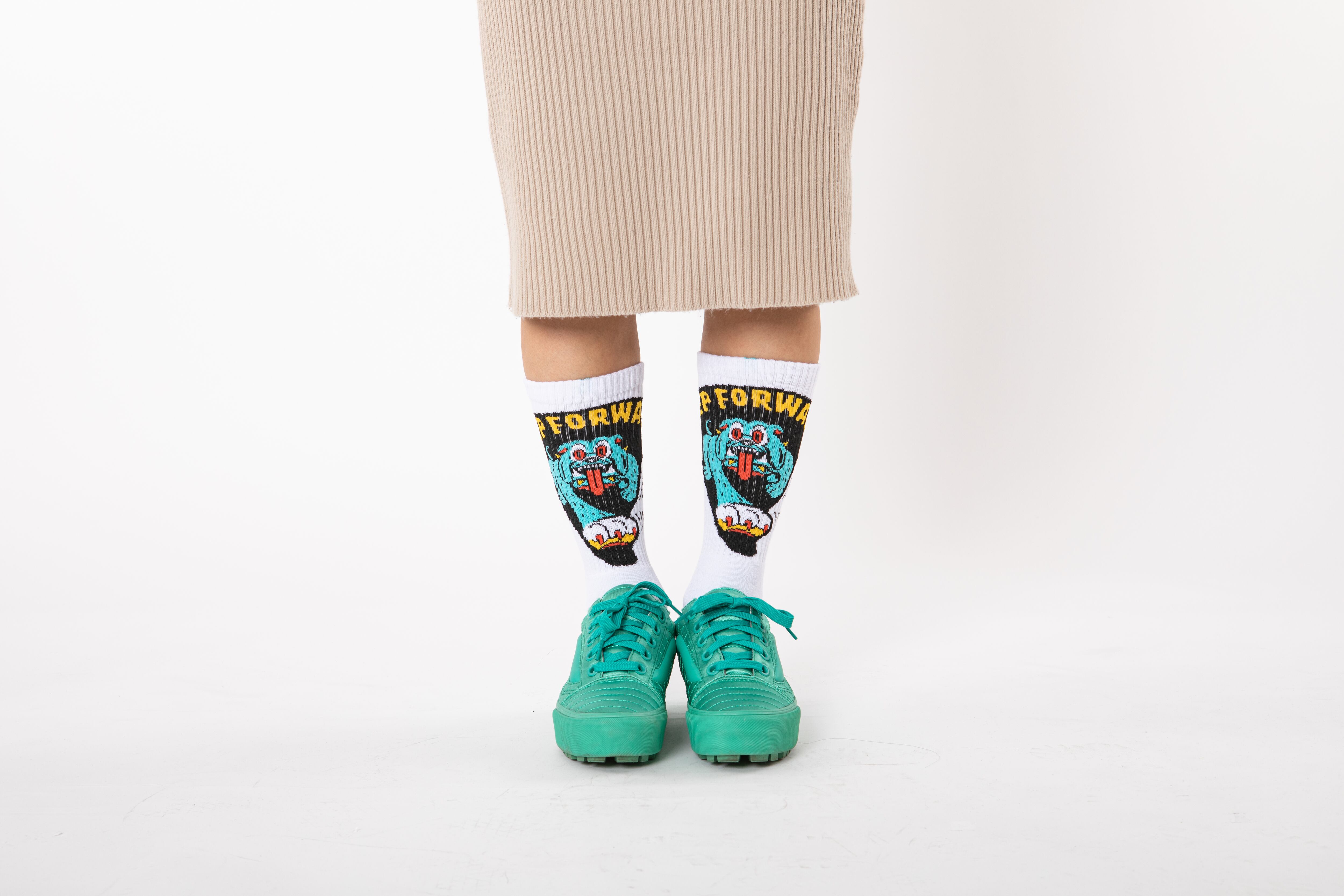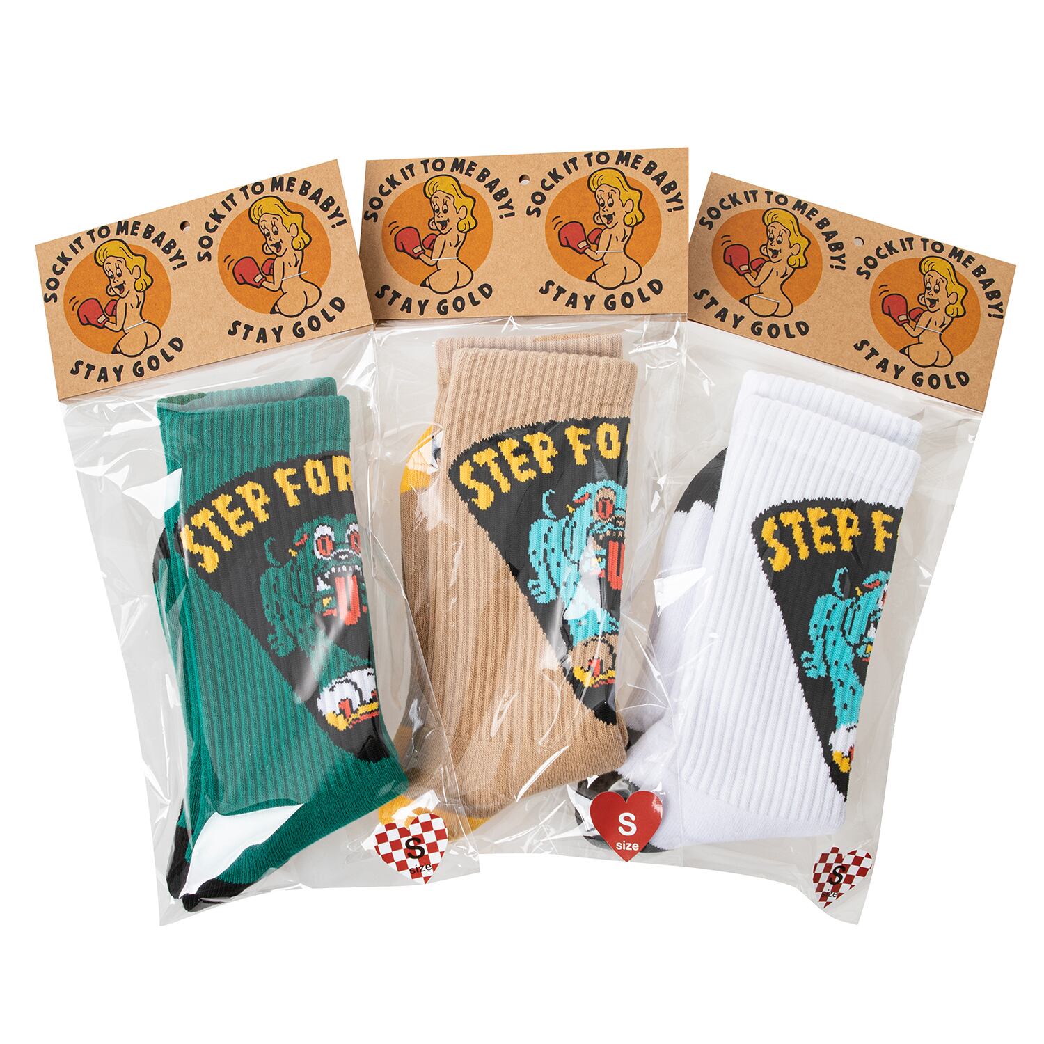 そんな中で Step forward というテーマで靴下のデザインを頂きました。
