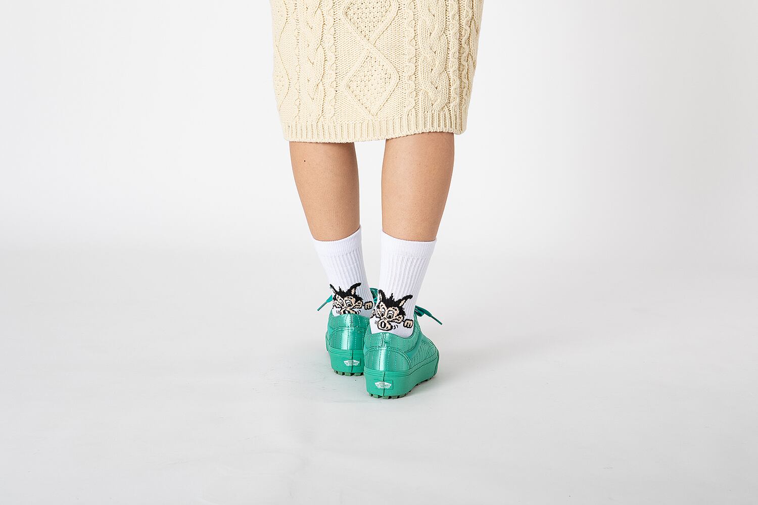 ズボンの裾からウルフくんがチラ見えするお洒落な靴下に仕上がりました!