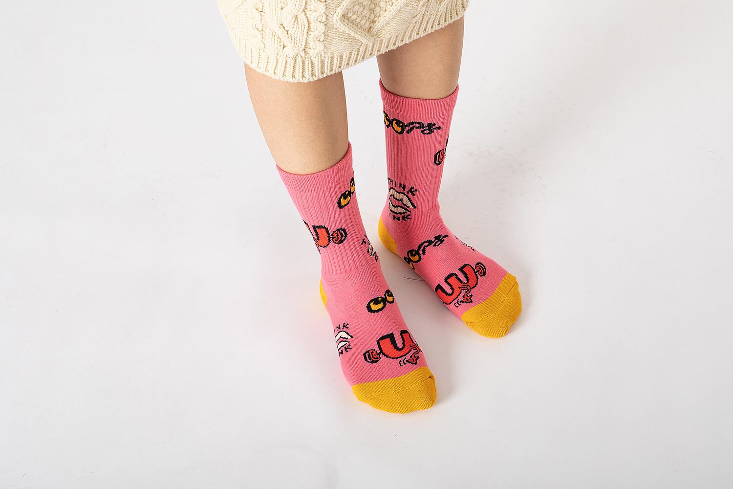 ポップなカラーで見た目も履き心地もサイコーな靴下に仕上がりました。