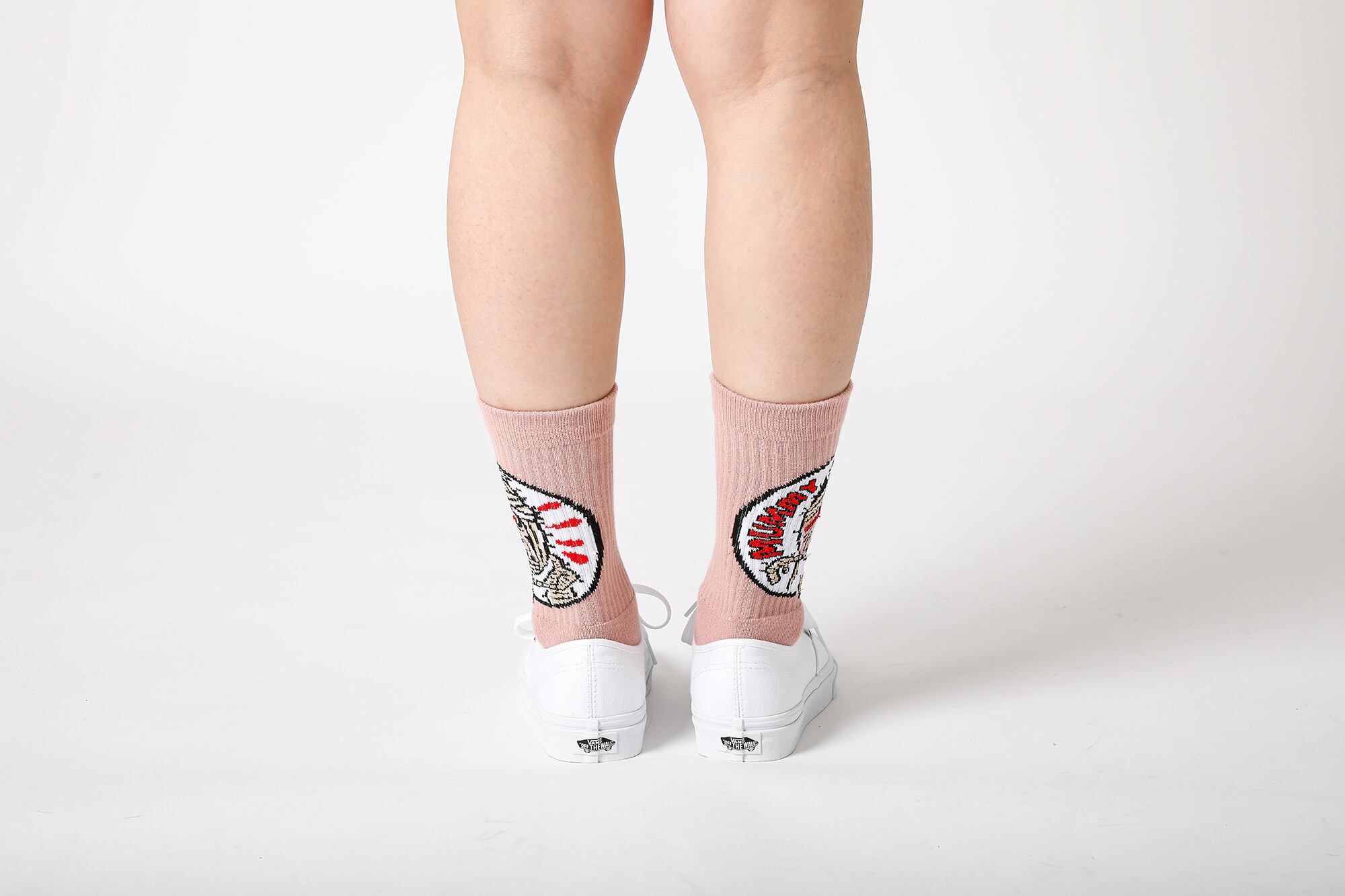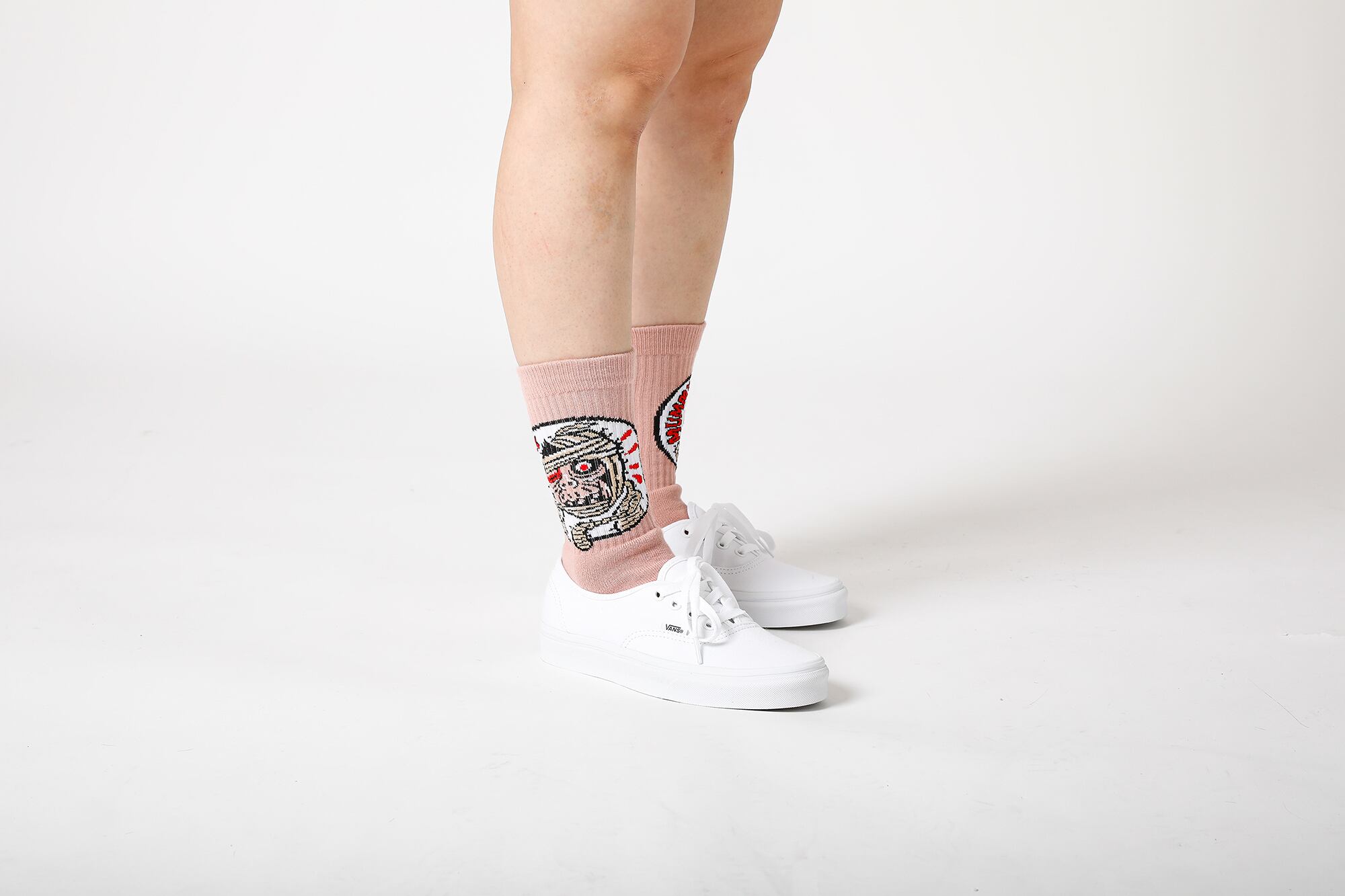 足元はフルパイル編みでしっかりと包み込むステイゴールド定番の製法で編み上げました。